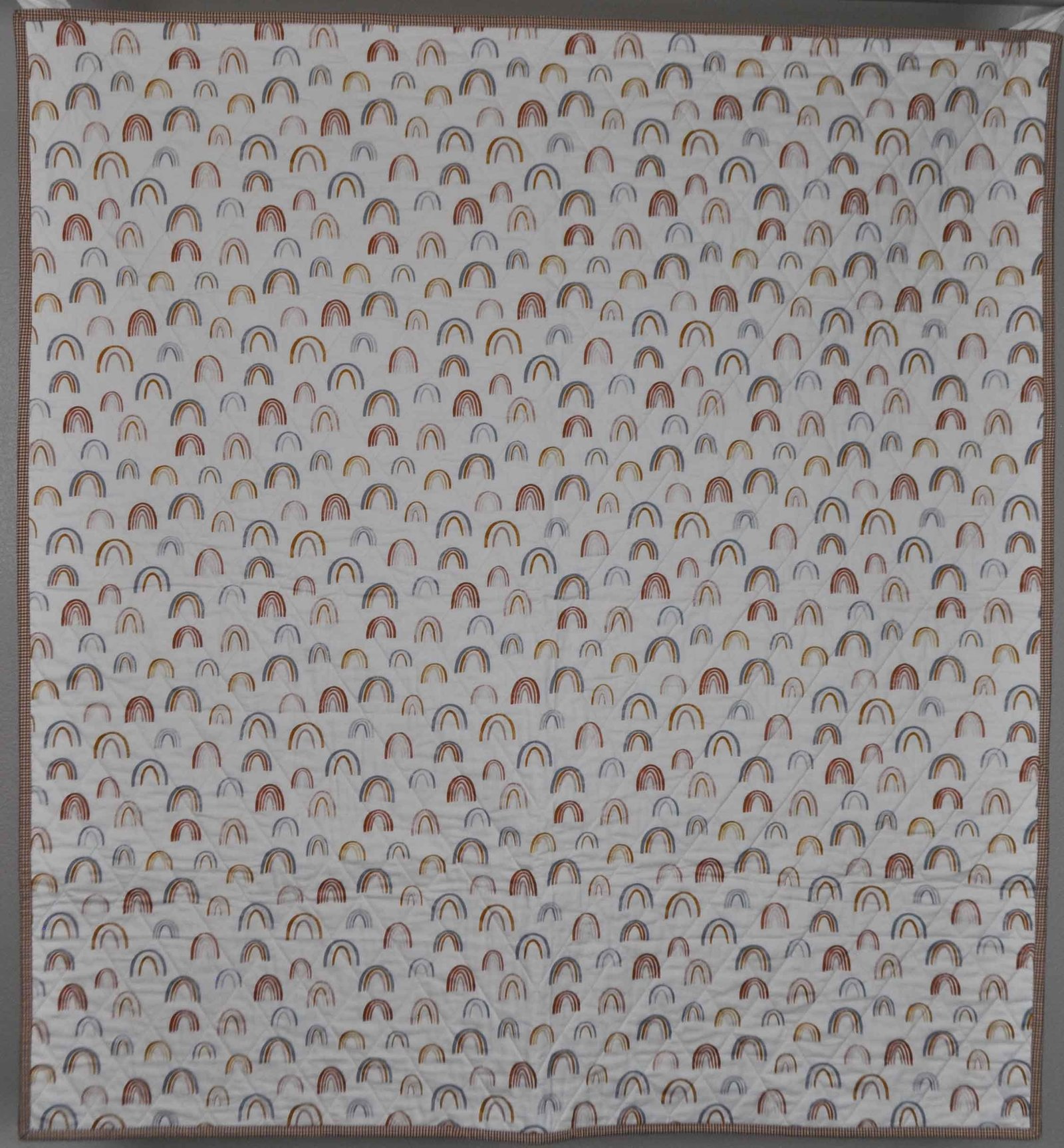For those who love a simpler design, this whole cloth quilt is for you. A whole cloth quilt is two pieces of whole fabric sewn together without piecing. The colors are subtle and sweet. The backing matches perfectly to create a modern quilt. The Bamboo batting makes this quilt extra soft and snuggly. The on point quilting design is lovely. Makes such a sweet baby gift.