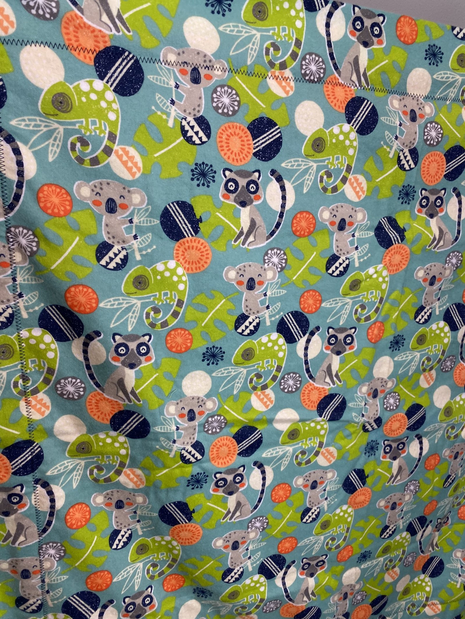 Playful koalas and lemurs with a soft Minky center makes a darling receiving blanket.