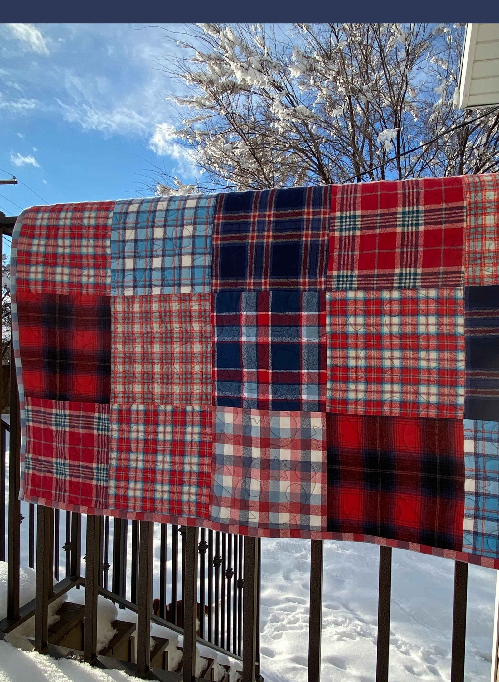 I love Robert Kaufman mammoth flannel. It is excellent quality. I have been collecting Americana fabric for 3 years, enough to make a quilt. Here it is! This is a warm and snuggly quilt but I definitely would pull it out and use as a lawn quilt around the 4th of July. So fun and festive. I have made a lot of these patchwork flannel quilts and they are my kids go-to when they choose a quilt to snuggle with. It is the perfect size but big enough for sharing with someone you want to sit close to.